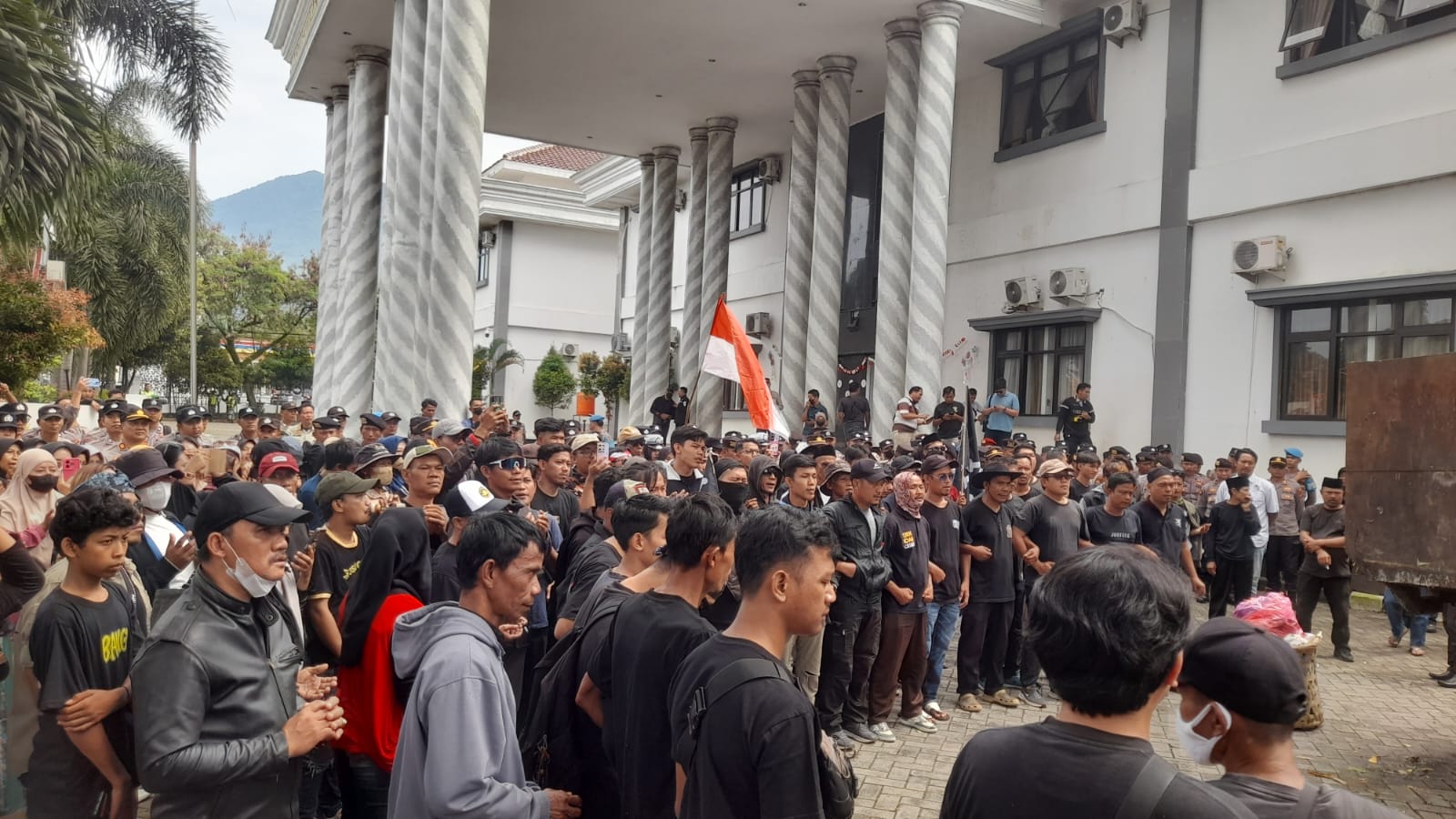 Situasi nyaris ricuh ketika beberapa massa mencoba mendobrak pagar kantor bupati. Aparat keamanan yang berjaga pun dibuat kewalahan menahan desakan warga.
