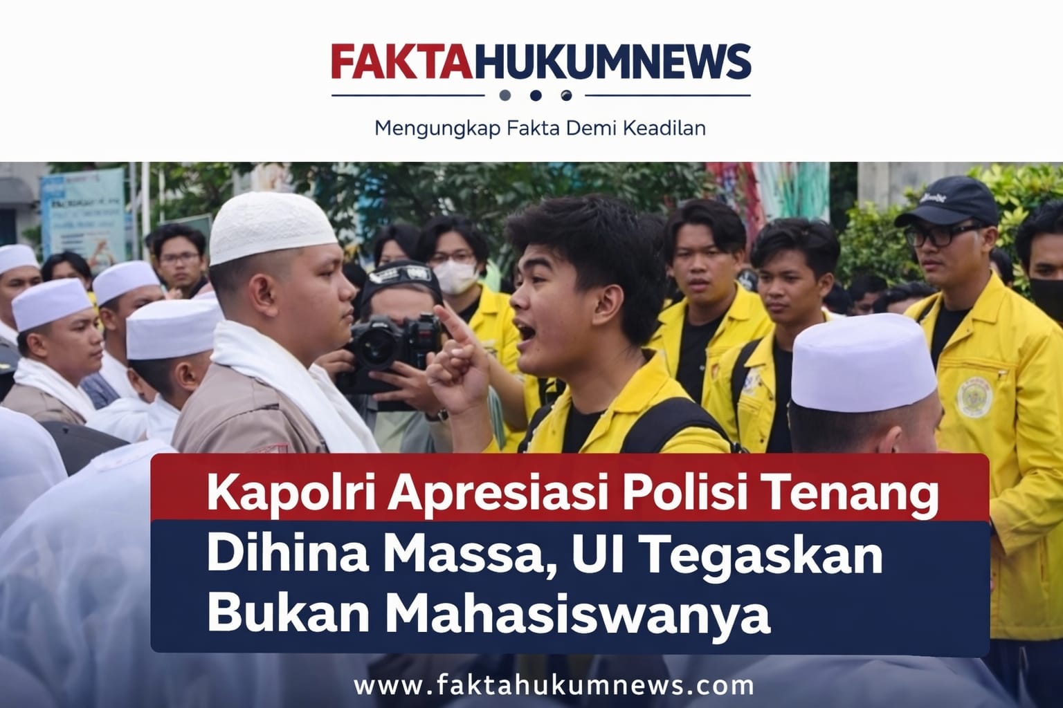 FAKTAHUKUMNEWS, Jakarta – Riuh demonstrasi di depan Markas Besar Kepolisian Negara Republik Indonesia (Mabes Polri) pada Jumat lalu (27/2/2026) menyisakan satu potongan adegan yang menyita perhatian publik. anggota polisi berdiri tanpa reaksi berlebihan, meski berulang kali menerima kata-kata keras dari peserta aksi.