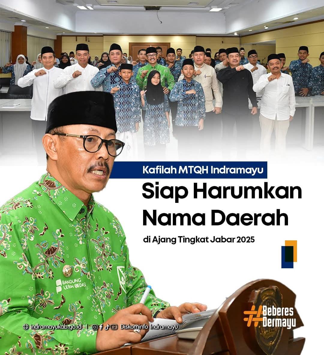 “Titip kepada pembina dan para peserta, semoga dengan semangat dan doa kita semua, prestasi besar dapat diraih. Apa pun hasilnya nanti, jangan membanggakan diri, tetapi jadikan sebagai sarana untuk lebih mawas diri dan terus berkontribusi memajukan Indramayu,” tambahnya.