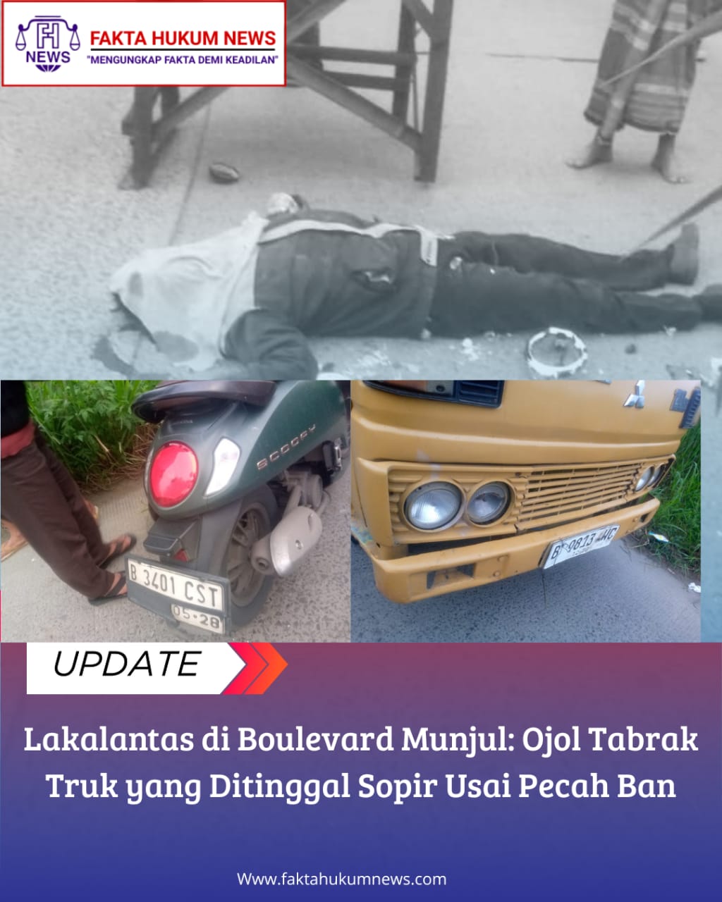FaktaHukumNews, Tangerang – Telah terjadi kecelakaan lalu lintas tepatnya di depan area pemakaman umum Jalan Raya Boulevard, Kampung Munjul, pada Minggu pagi (22/06/2025) sekitar pukul 05.00 WIB.