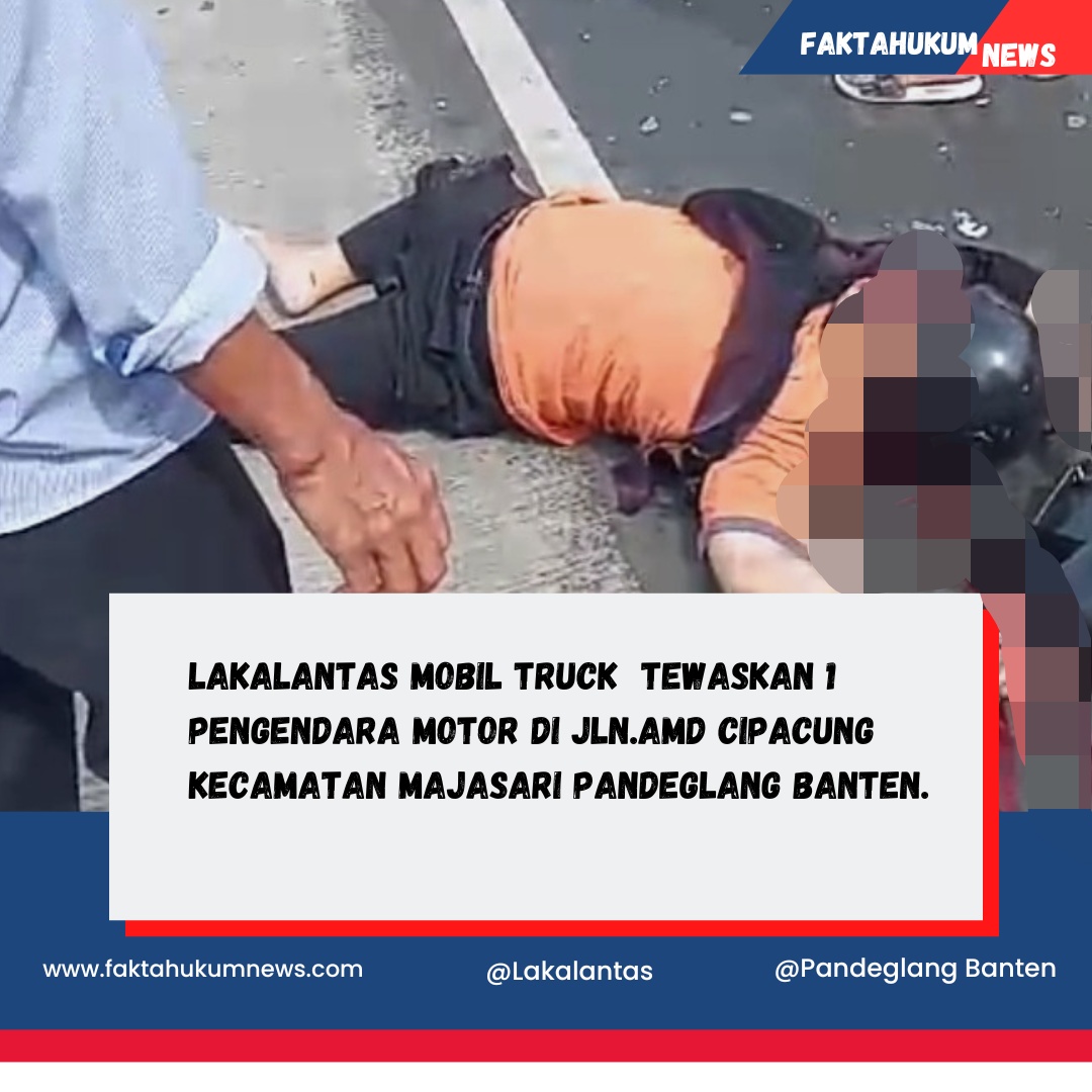 Pandeglang Banten-faktahukumnews-Kecelakaan lalu lintas terjadi di depan Kantor Dinas Perhubungan Kabupaten Pandeglang, tepatnya di Jalan AMD, Kampung Cipacung, Kelurahan Cipacung, Kecamatan Majasari, pada Selasa (04/02/2025) Pagi Sekitar pukul 10:00 wib Insiden ini melibatkan sebuah truk Fuso dengan nomor polisi B 9675 BCB dan sebuah sepeda motor Honda Bebek bernomor polisi A 5597 KE, mengakibatkan satu korban jiwa.