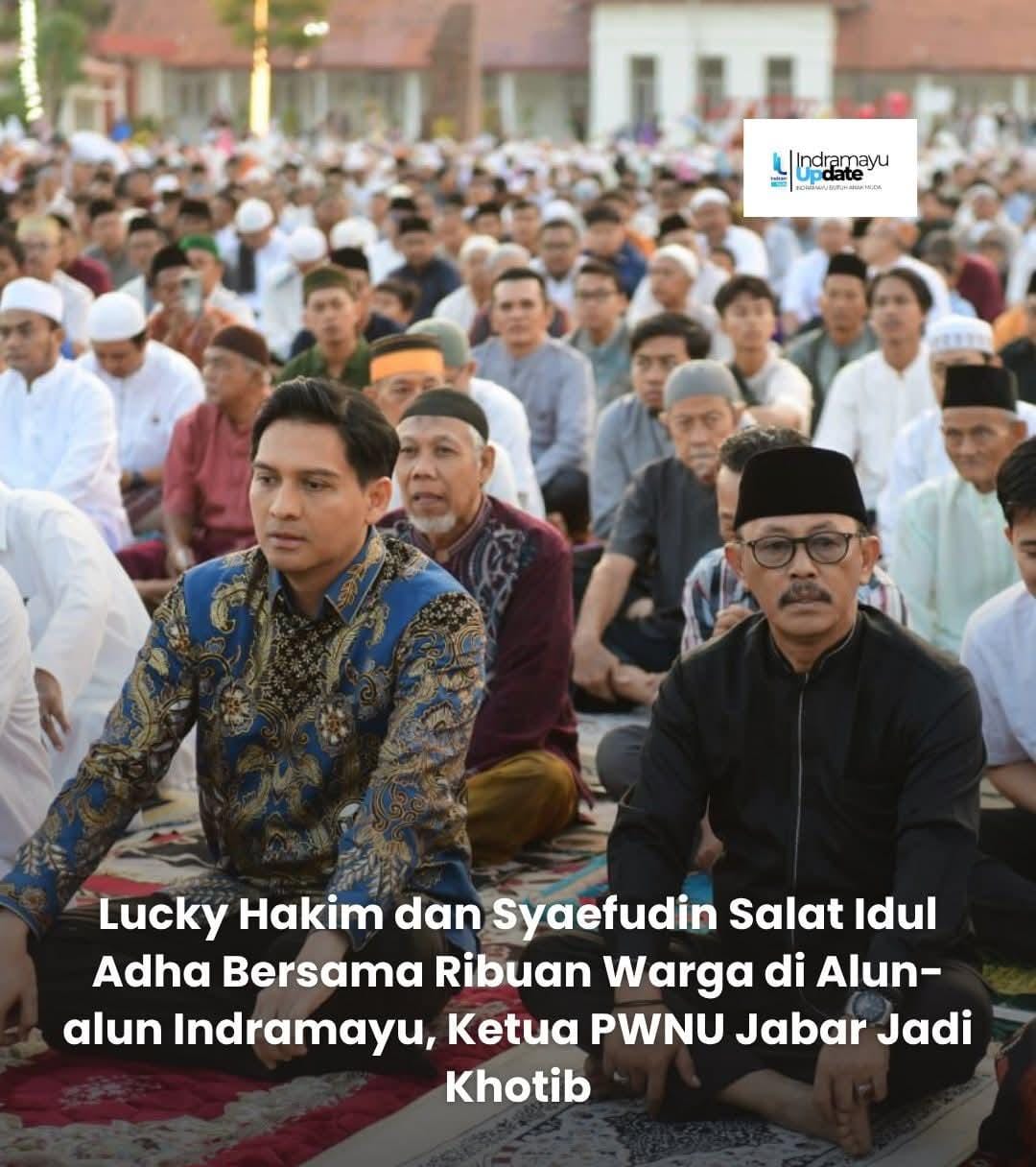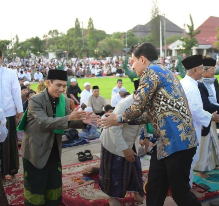 Setelah selesai melaksanakan salat Iduladha, tampak Bupati Indramayu Lucky Hakim, Wakil Bupati Indramayu, Syaefudin serta pejabat Pemda Indramayu lainnya bersilaturahmi dengan warga.