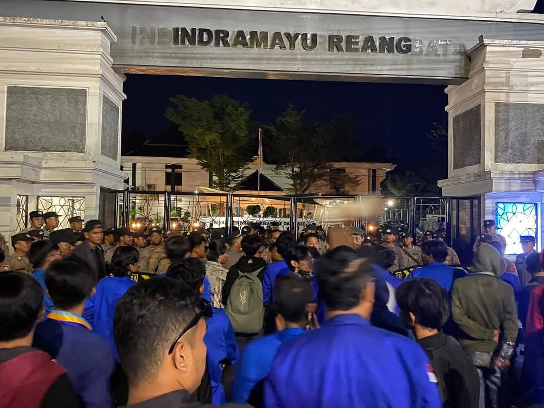 Mereka pun masih bertahan hingga malam hari dan baru mau bubar pukul 18.30 WIB. Diketahui alasan mahasiswa masih bertahan karena ingin merangsek masuk ke dalam Gedung DPRD Indramayu, namun tertahan oleh barikade pihak kepolisian.