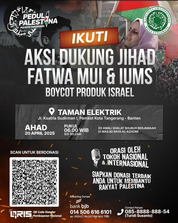 Fakta Hukum News, Tangerang – Majelis Ulama Indonesia (MUI) Kota Tangerang bersama masyarakat mengadakan Aksi Dukungan Jihad dan Boikot Produk Israel sebagai bentuk nyata solidaritas terhadap Palestina.