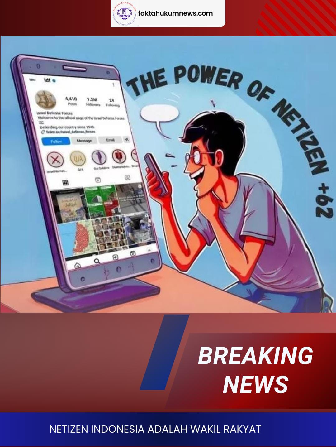 Jakarta,faktahukumnws.com-Di era digital, netizen Indonesia memegang peran penting dalam menciptakan perubahan sosial, politik, dan hukum. Dengan lebih dari 200 juta pengguna internet, suara netizen kini setara dengan “wakil rakyat” modern yang mengawasi kebijakan pemerintah, menyuarakan keadilan, dan mengungkap berbagai kejanggalan. Netizen memiliki kekuatan besar untuk memviralkan isu, memengaruhi opini publik, hingga mendesak penegakan hukum.