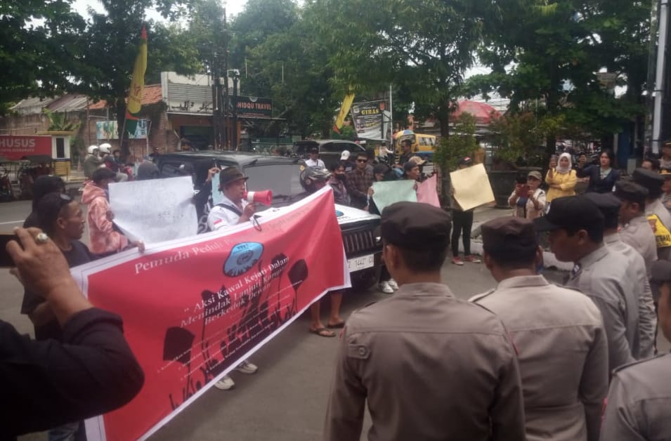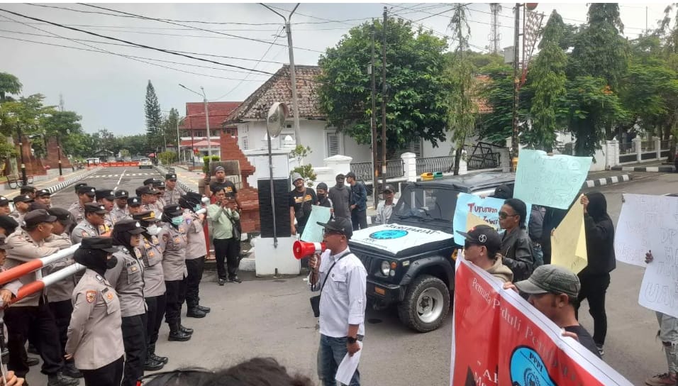 Peserta aksi demo, mempertanyakan kasus tunjangan perumahan (TUPER) TA 2022 yang menyeret nama mantan Ketua DPRD atau Wakil Bupati yang saat ini menjabat.