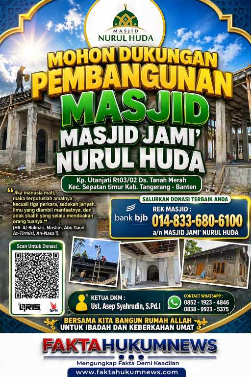 FAKTAHUKUMNEWS, Tangerang -Pembangunan Masjid Jami’ Nurul Huda yang berlokasi di Kp. Utanjati RT 03/02, Desa Tanah Merah, Kecamatan Sepatan Timur, Kabupaten Tangerang, Banten, saat ini tengah berlangsung dan membutuhkan dukungan dari masyarakat luas.