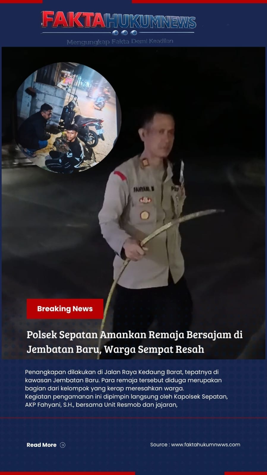 FAKTAHUKUMNEWS, Tangerang – Jajaran Polsek Sepatan berhasil mengamankan sejumlah remaja yang kedapatan membawa senjata tajam pada Minggu dini hari (19/4/2026).