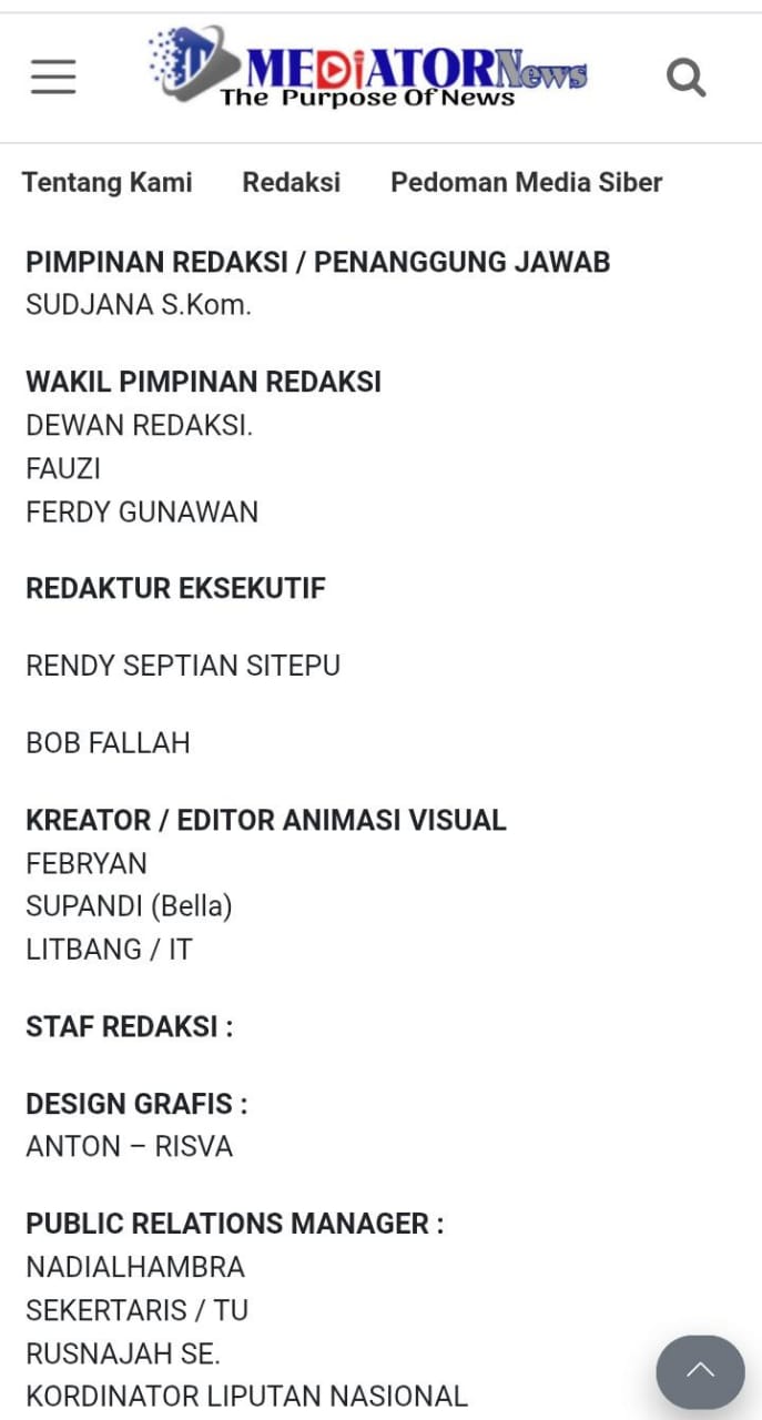 FaktaHukumNews, Jakarta – Perusahaan Media Pristiwa Group, yang menaungi media online PristiwaNews dan Suara62.id, Pristiwa News (Pristiwa TV Channel) merasa terusik dengan munculnya sebuah media online “Mediator News” yang mencatut nama secara struktural di dalam box redaksinya.