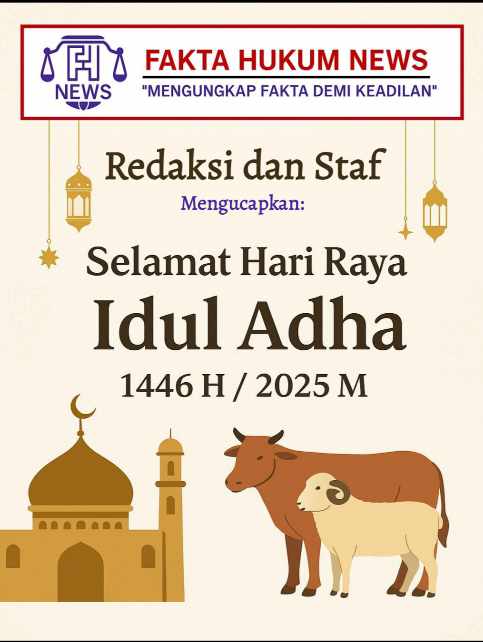 FaktaHukumNews, Tangerang- Dalam suasana penuh keberkahan dan semangat pengorbanan, seluruh staf dan redaksi Faktahukumnews mengucapkan Selamat Hari Raya Idul Adha 1446 Hijriah / 2025 Masehi kepada seluruh umat Islam di Indonesia dan dunia.