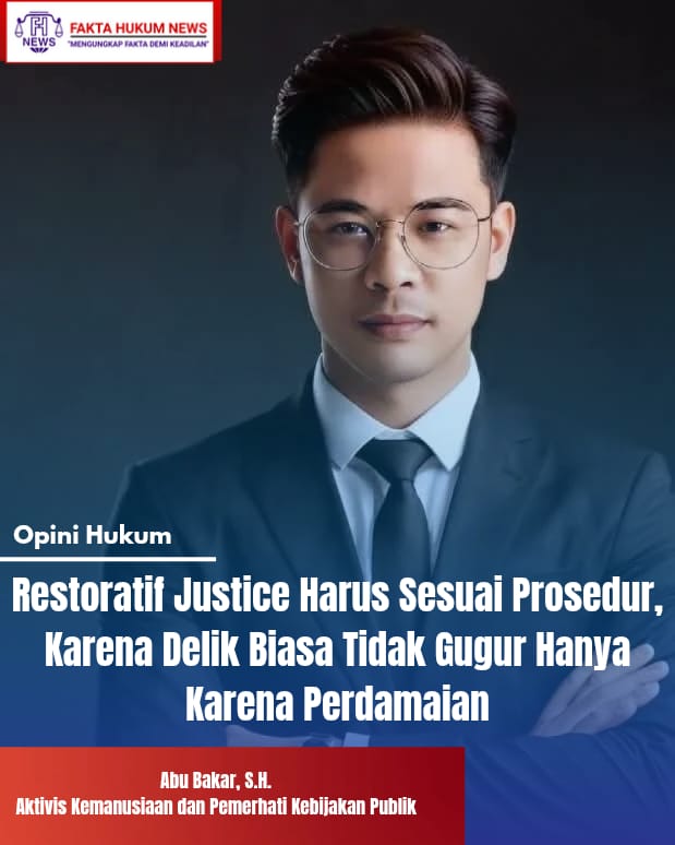 Sebagai aktivis kemanusiaan dan pemerhati kebijakan publik, saya memandang bahwa penerapan keadilan restoratif adalah langkah positif dalam sistem peradilan, tetapi harus ditempatkan secara proporsional dan sah. Restoratif Justice bukan sekadar damai di atas kertas, melainkan bagian dari tata kelola hukum yang menjamin keadilan bagi korban, pelaku, dan masyarakat secara luas.
