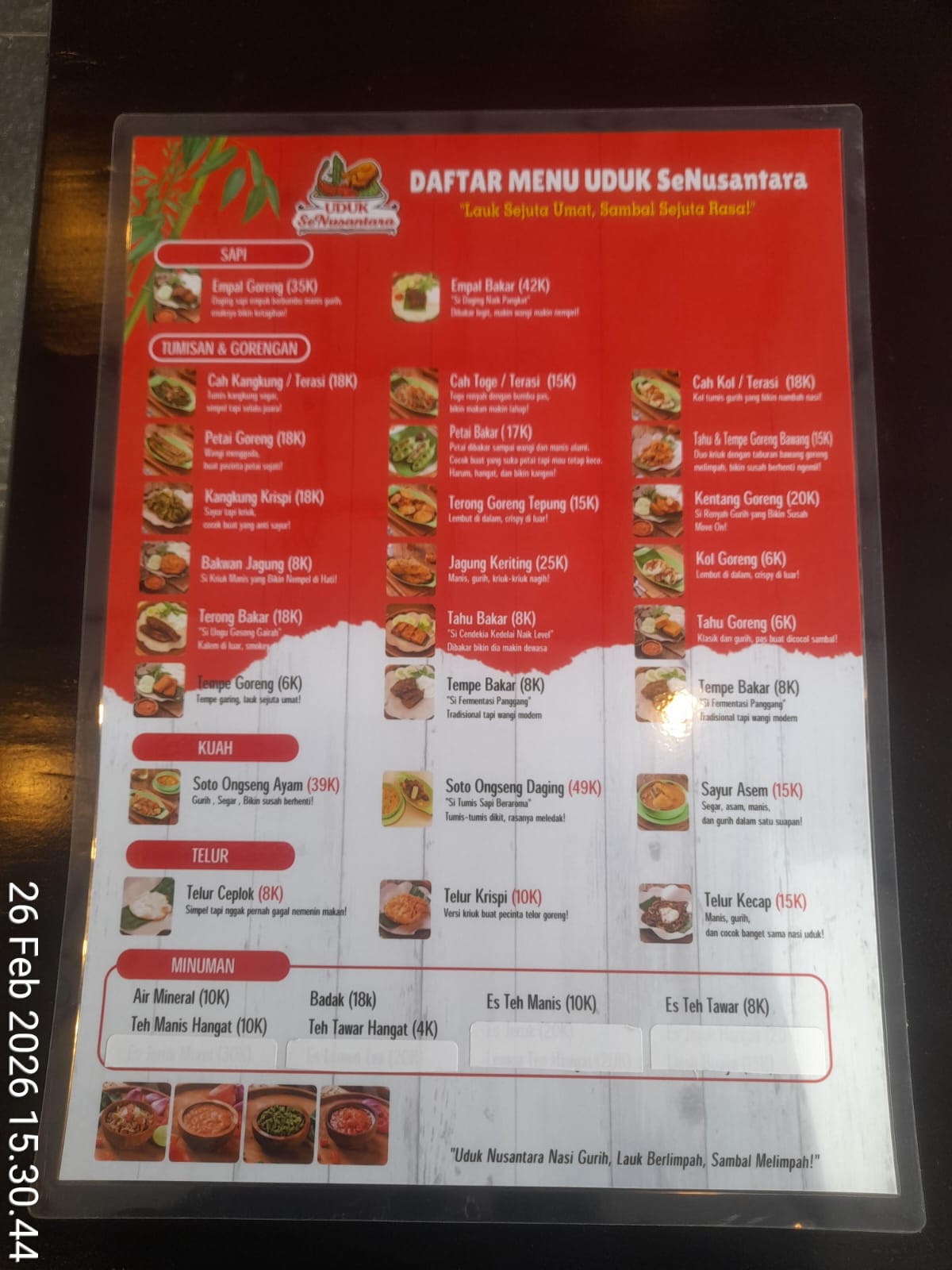 Uduk Se-Nusantara ini menghadirkan aneka ragam makanan yang di sajikan dengan bahan-bahan segar dan berkualitas, sehingga memberikan rasa yang autentik dan lezat.