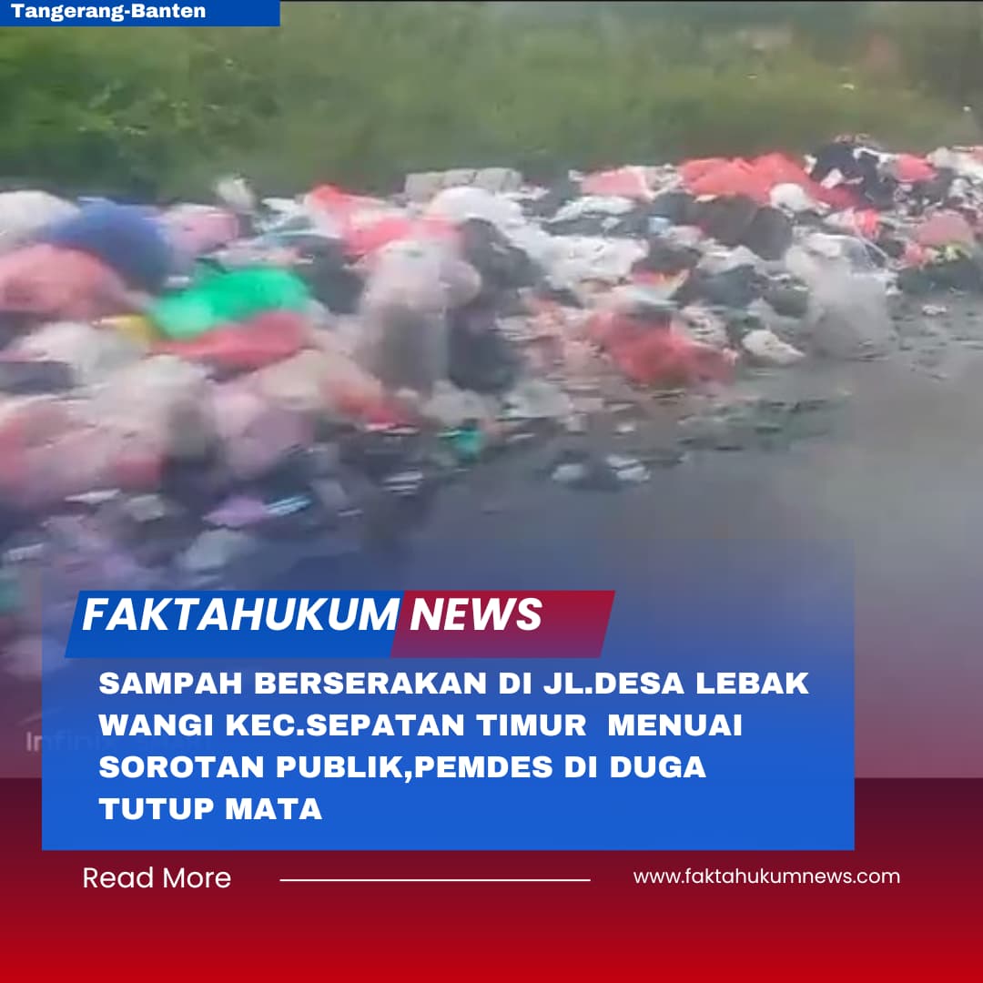 Fakta Hukum News, Tangerang – Tumpukan sampah rumah tangga yang berserakan di sepanjang Jalan Desa Lebak Wangi, Kecamatan Sepatan Timur, Kabupaten Tangerang, menjadi sorotan publik. Pasalnya, selain mengganggu pemandangan dan pengguna jalan, bau busuk dari sampah tersebut juga dianggap membahayakan kesehatan masyarakat sekitar.