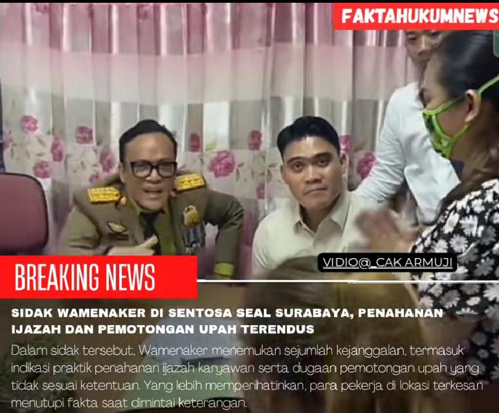 Fakta Hukum News, Surabaya – Wakil Menteri Ketenagakerjaan RI, Immanuel Ebenezer, melakukan inspeksi mendadak (sidak) ke UD Sentosa Seal, yang berlokasi di Kompleks Pergudangan Margomulyo Suri Mulia Permai Blok H-14, Surabaya, Kamis (17/4/2025).