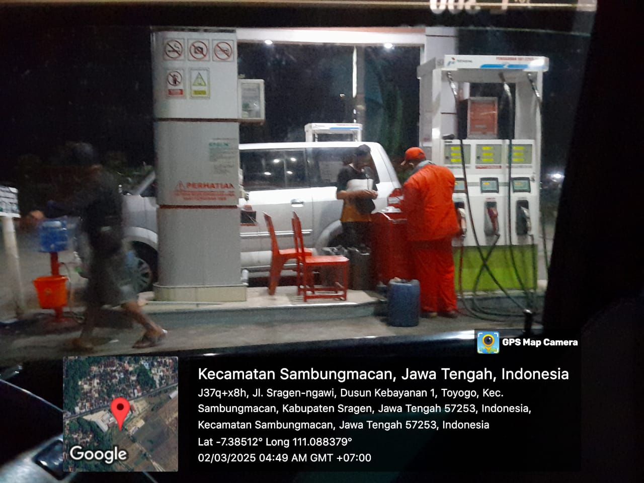 Tim awak media menemukan indikasi praktik ilegal ini secara tidak sengaja saat mengisi bahan bakar pada Senin, (03/032025), sekitar pukul 04.49 WIB di SPBU yang berlokasi di Jl. Sragen – Ngawi, Dusun Kebayanan 1, Toyogo, Kecamatan Sambungmacan, Kabupaten Sragen, Jawa Tengah.