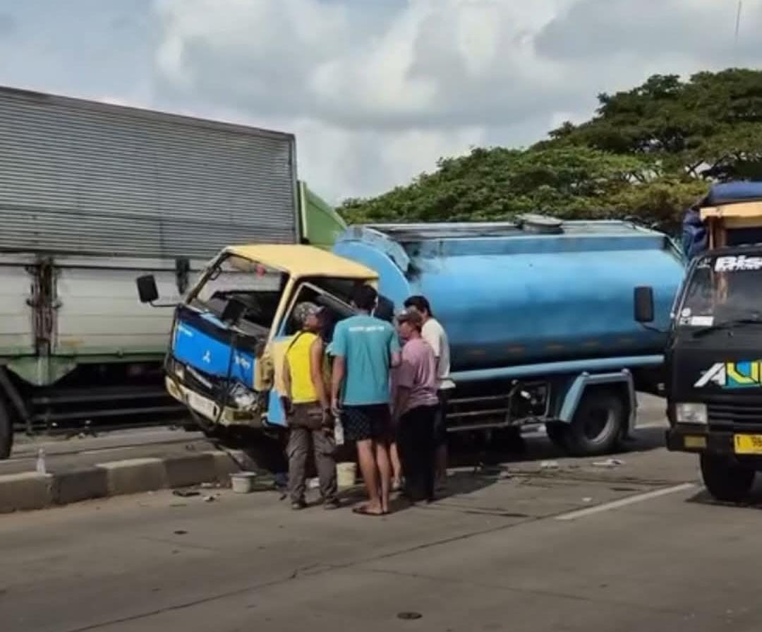 Saat mengantri, kendaraannya di tabrak dari arah belakang oleh kendaraan Hino Truck Wing Box yang dikemudikan Andi Andani (39) warga Kaduagung Barat, Kabupaten Lampung.
