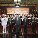 JAKARTA-Panglima TNI Jenderal TNI Agus Subiyanto menyematkan tanda kehormatan kepada Menteri Pertahanan Republik Indonesia, Sjafrie Sjamsoeddin dalam Acara Penganugerahan Tanda Kehormatan, bertempat