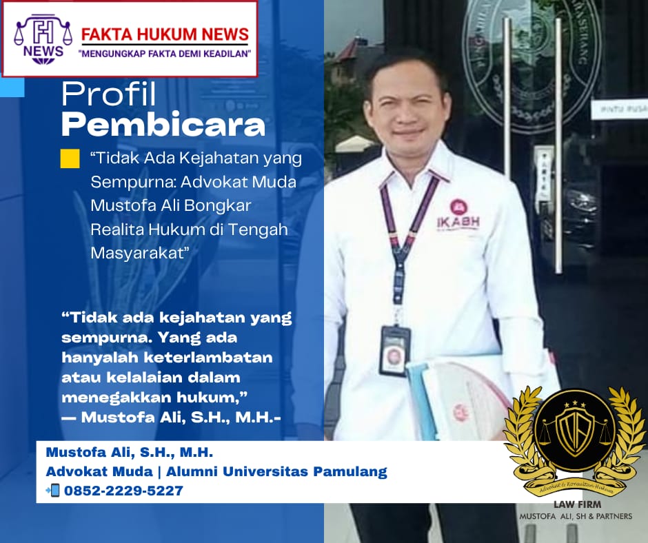 FaktaHukumNews, Tangerang – Di tengah maraknya tindak kejahatan dengan modus semakin kompleks, advokat muda Mustofa Ali, S.H., M.H., menegaskan bahwa “tidak ada kejahatan yang sempurna.”