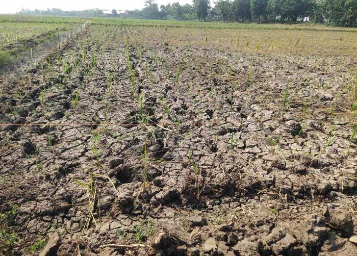 Hal serupa juga dikeluhkan Mashudi, ia yang sudah menghabiskan puluhan juta rupiah untuk mengelola padi pun hanya bisa gigit jari. Sebab, kini kondisi sawahnya kering dan tanahnya pada pecah.