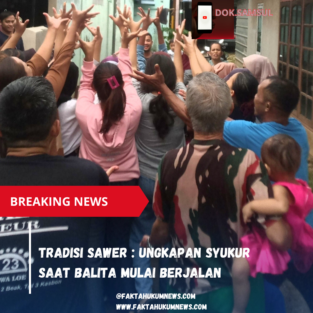 Tangerang,faktahukumnews.com-Tradisi sawer menjadi salah satu budaya unik yang masih dilestarikan oleh masyarakat Indonesia, termasuk warga Kelurahan Cikoneng Ilir, Kota Tangerang. Fenomena ini dilakukan sebagai bentuk rasa syukur dan kebahagiaan orang tua atas momen bersejarah dalam tumbuh kembang anak, yaitu saat seorang balita berhasil mengambil langkah pertamanya.