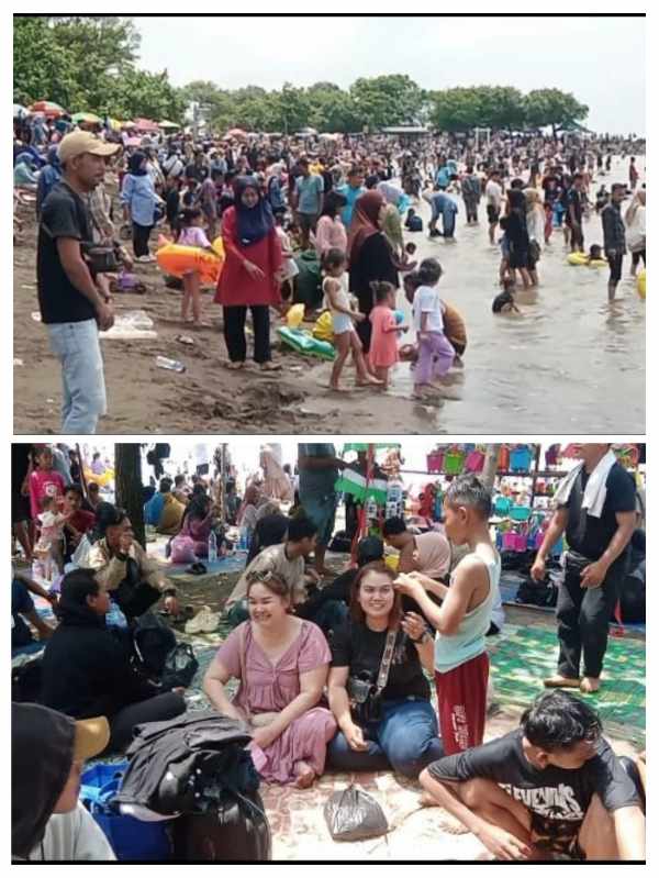 Berdasarkan pantauan awak media pada Kamis (03/04/2025), ribuan wisatawan terlihat memadati kawasan pantai sejak pagi hari. Mereka datang dari berbagai daerah untuk menikmati suasana pantai, bermain air, serta berwisata kuliner di sekitar lokasi.